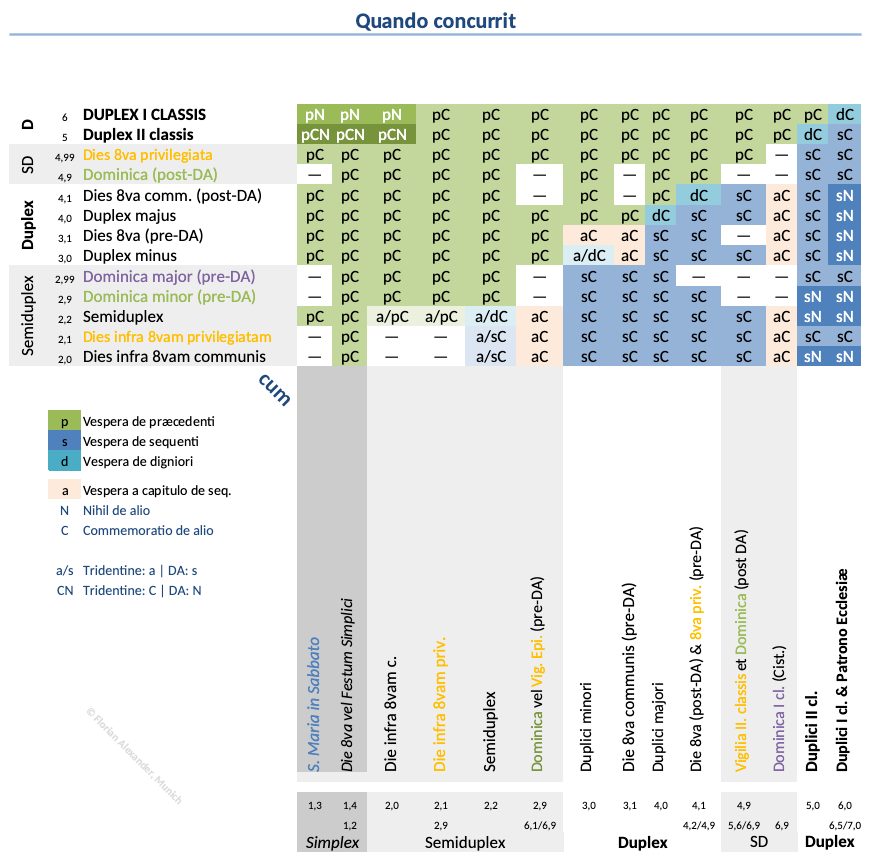 I. classis | Duplex I. cl. (max. sollem.) | | | I. ordinis | | | 7.0 | Excludes all commemorations |